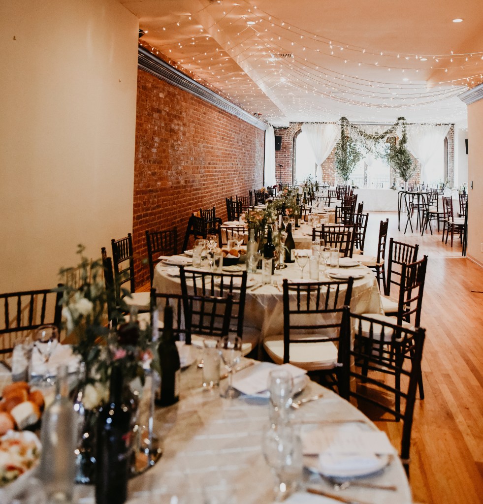 Family Style (for 150 people and under) – Our most traditional option for serving dinner would be a Family Style Dinner. Your menu starts during cocktail hour with 3 stationary items for guests to come up and fill a plate and 3 passed appetizers that they can quickly grab by circulating wait staff. Then our seated family style dinner continues in the Loft starting with a salad, two entree choices and two sides. Family Style allows everyone at the table to grab whichever entree catches their eye. You do not need to list menu options on your invitation and collect their order ahead of time.